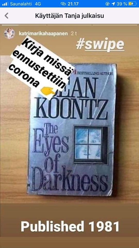 että kirjailija Dean Koontzin pystyi ennustamaan koronaviruksen,